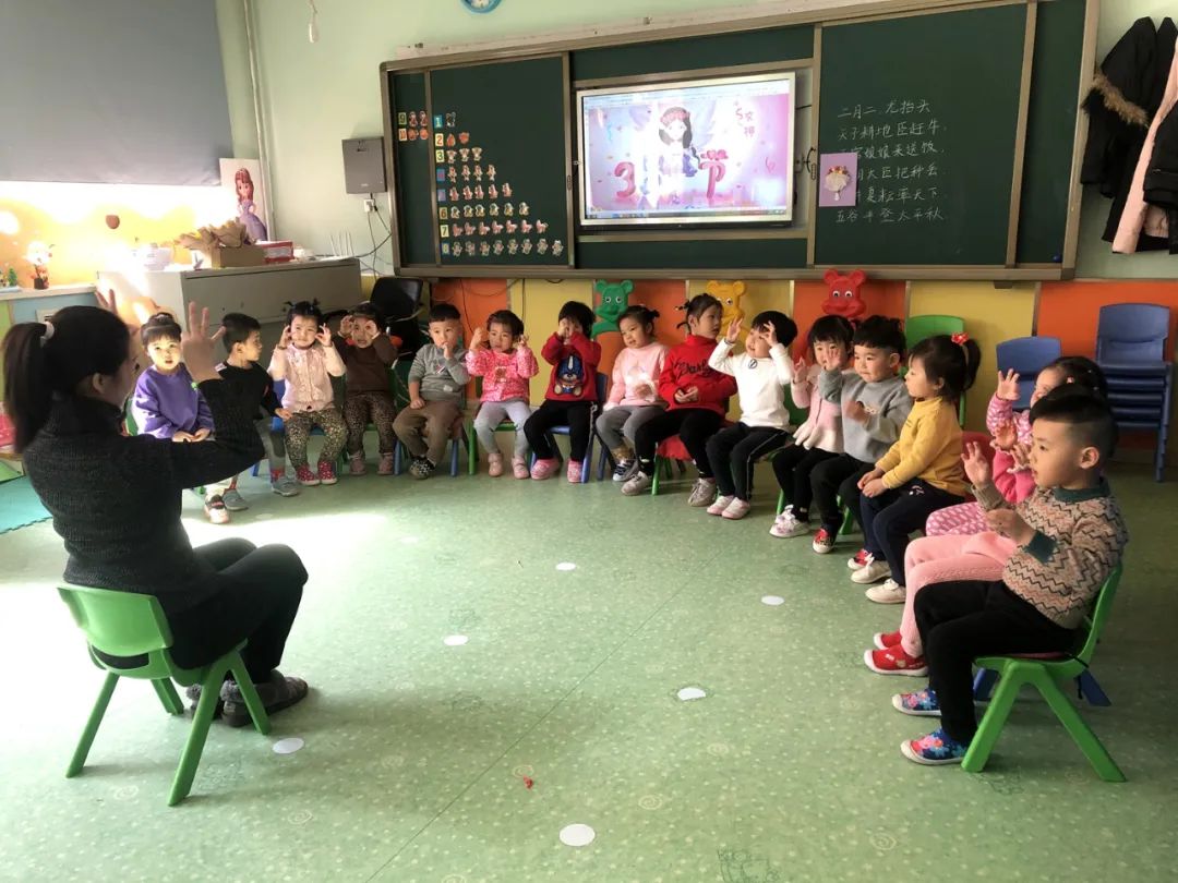 在中二班,师生们正在给妈妈们录制手语操《最亮的星星》,一首温暖的歌曲,一段简单的手语,让感恩的种子播撒在孩子们的心田。