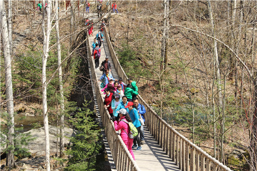 畅享开园前奏曲,上周末,威虎山九寨景区人流如织,一场特别的旅游体验牵动着游客的心。柴河重点国有林局旅游公司在世界地球日来临之际,以“节约集约利用资源 倡导绿色简约生活——讲好我们的地球故事”为主题,开展了宣传活动。活动期间,威虎山九寨景区免费开放,旨在向广大游客倡导“保护环境 共创美好景区”的理念,动员游客养成节约资源、保护自然、保护环境的良好行为习惯。在威虎山九寨景区,游客们远离PM2.5、水质的污染和城市的喧嚣,吸高氧空气,听鸟鸣泉音,享森林馨香,抛开烦恼与疲惫,赏春、游玩、拍照,尽享乍暖还寒的别样温暖。