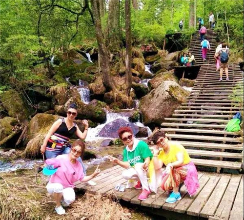 魏玉婷是“夕阳红”舞蹈队的负责人,平时非常喜欢户外运动,这次她和她舞蹈队的姐妹们一起来到妈妈顶景区,尝林区美食,欣赏自然风光,还穿平时舞蹈服跳舞留念,也有不少游客特意带着坐垫、烧烤架、食材来这里野炊,尽享假日风光。