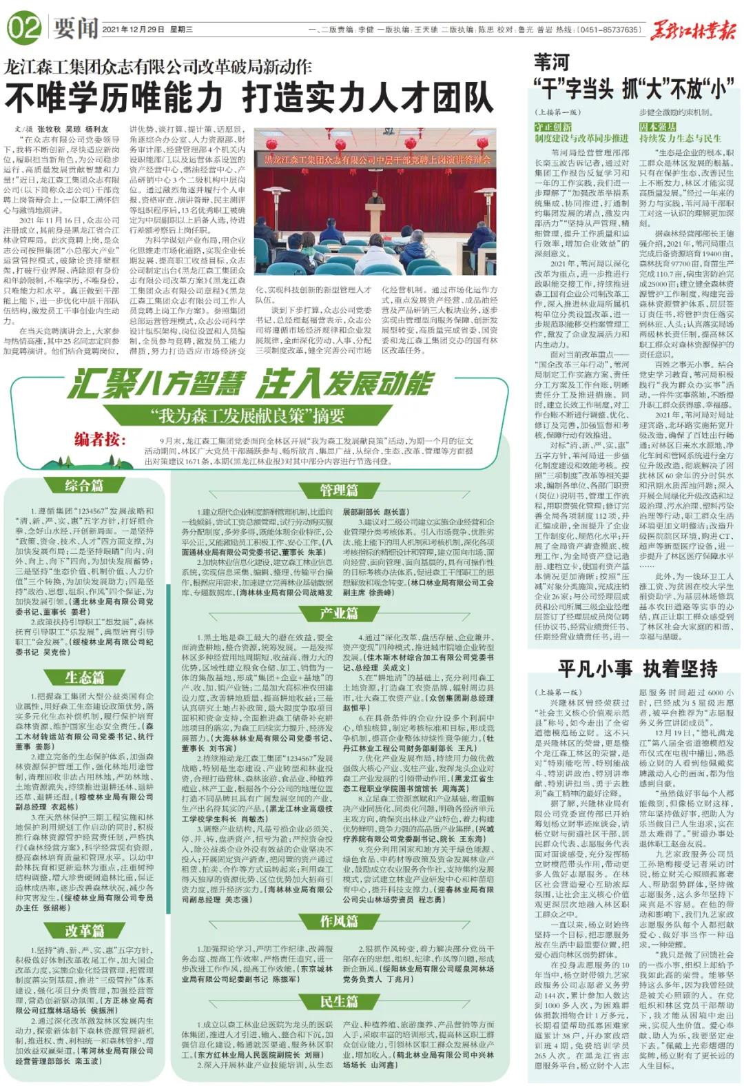 | 【黑龙江林业报】龙江LEHU88(中国)唯一官方网站集团众志有限公司改革破局新动作 | 不唯学历唯能力 打造实力人才团队 | |