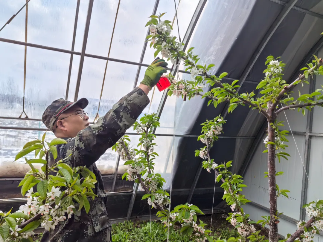 随着天气逐渐回暖,清河林业局有限公司智能果蔬种植基地呈现出一片生机盎然的景象。大棚内的大樱桃迎来了盛花期,工作人员抢抓时机,进行授粉作业,为今年的丰收打下良好基础。