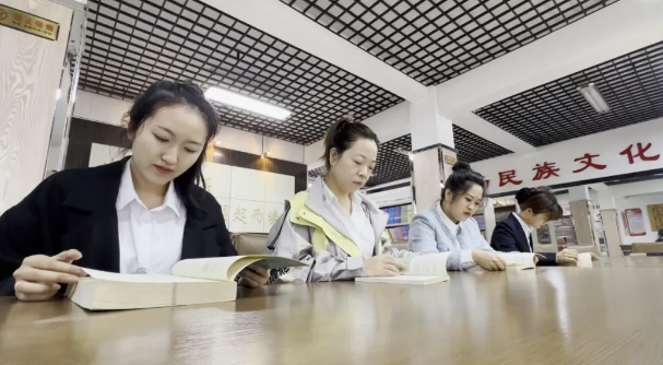 在省林业卫校,校团委带领全体团学干部走进学校图书馆,开展“好书伴成长 书香满校园”读书活动。在图书管理员的讲解下,同学们充分了解图书的检索、序列、书籍种类等知识。大量经典著作激起了同学们浓厚的阅读兴趣,纷纷将借阅的图书带进班级,与同学们一起阅读、赏析。