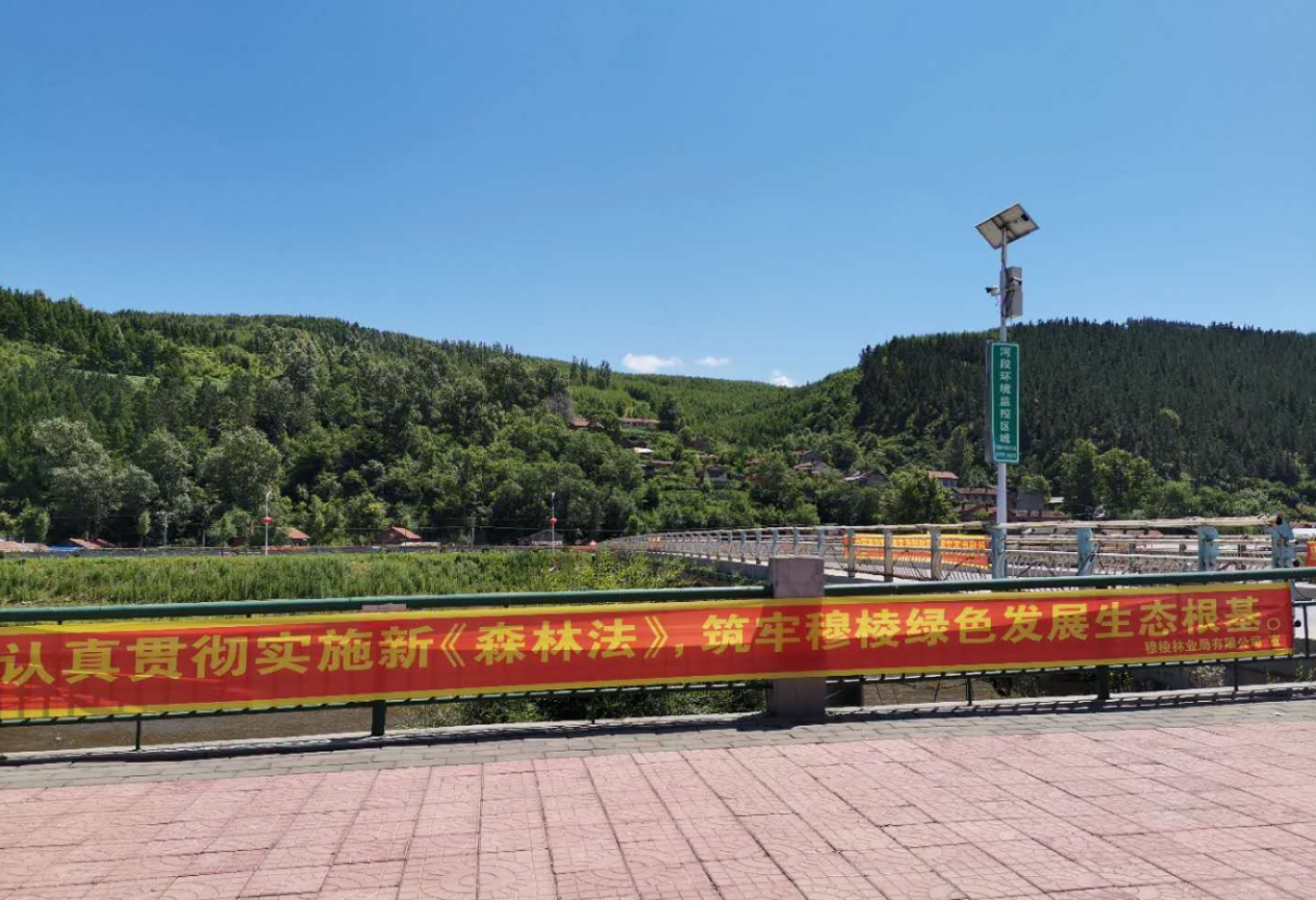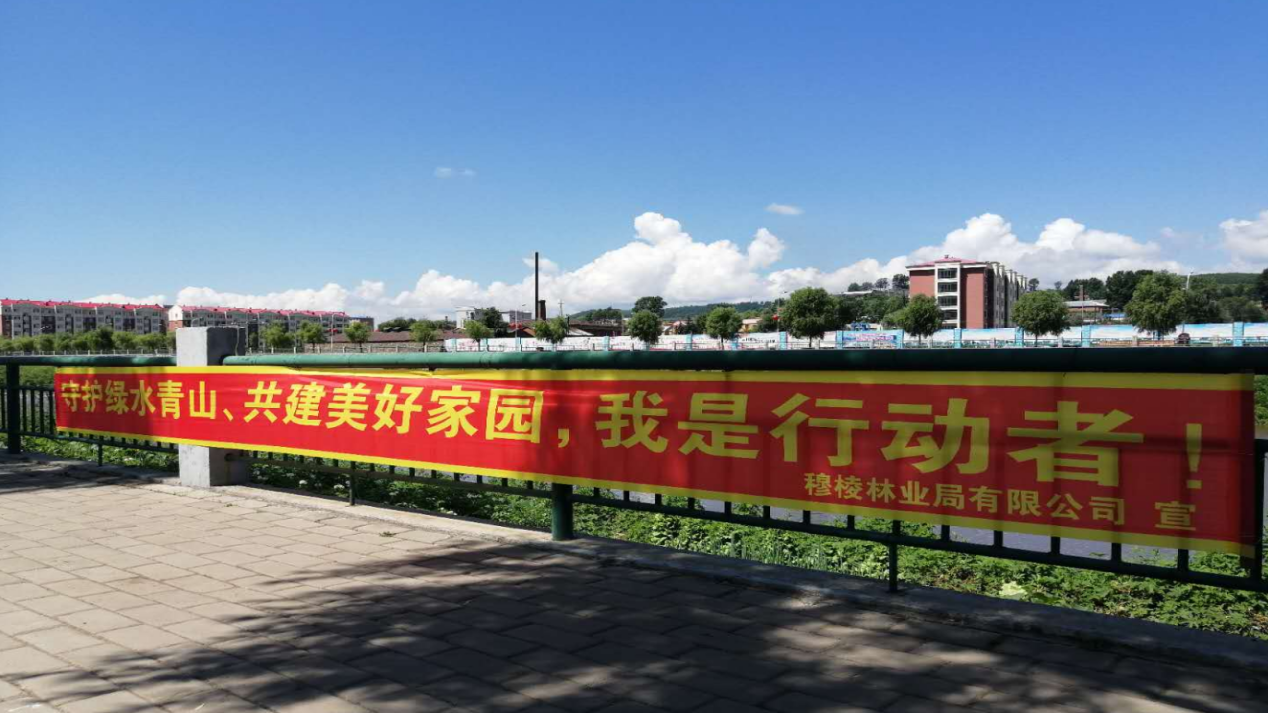 制作宣传横幅120条,在辖区广场、学校、沿河公路两侧、基层林场所等显耀地段悬挂。
